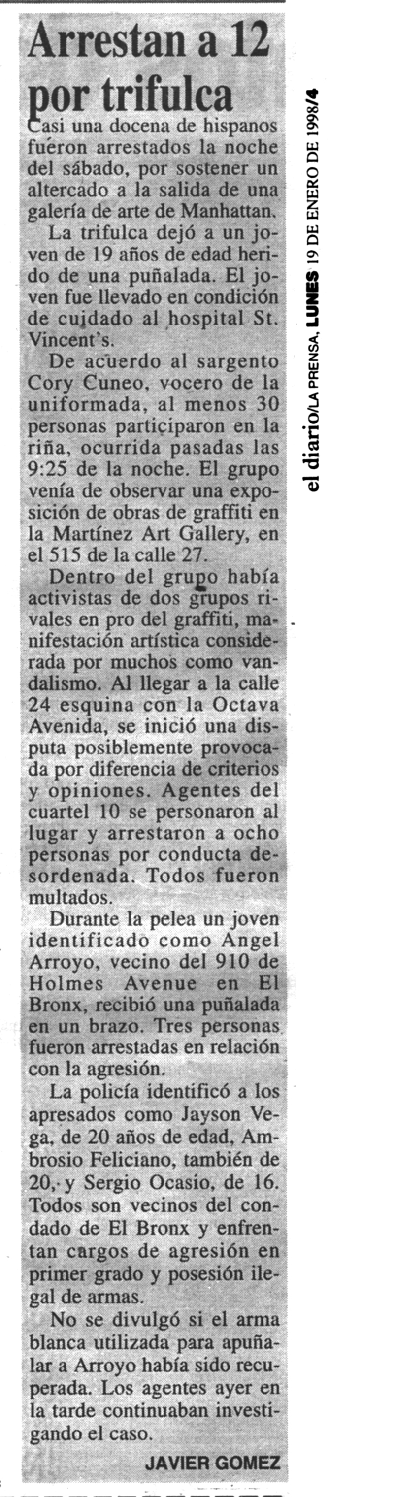 Participating Artists: ADER, ATE, BEN, BRUZ, CHAZ, DBS, EARSNOT, FORE, LOUIE 167, NAVE, METH, NATO, OPIE, OVIE, POES, REBEL, REHAB, RN, SH, SHEAR, SPEK, TECK, TD, TOSKE, WED (Group Exhibition), Martinez Gallery, NYC